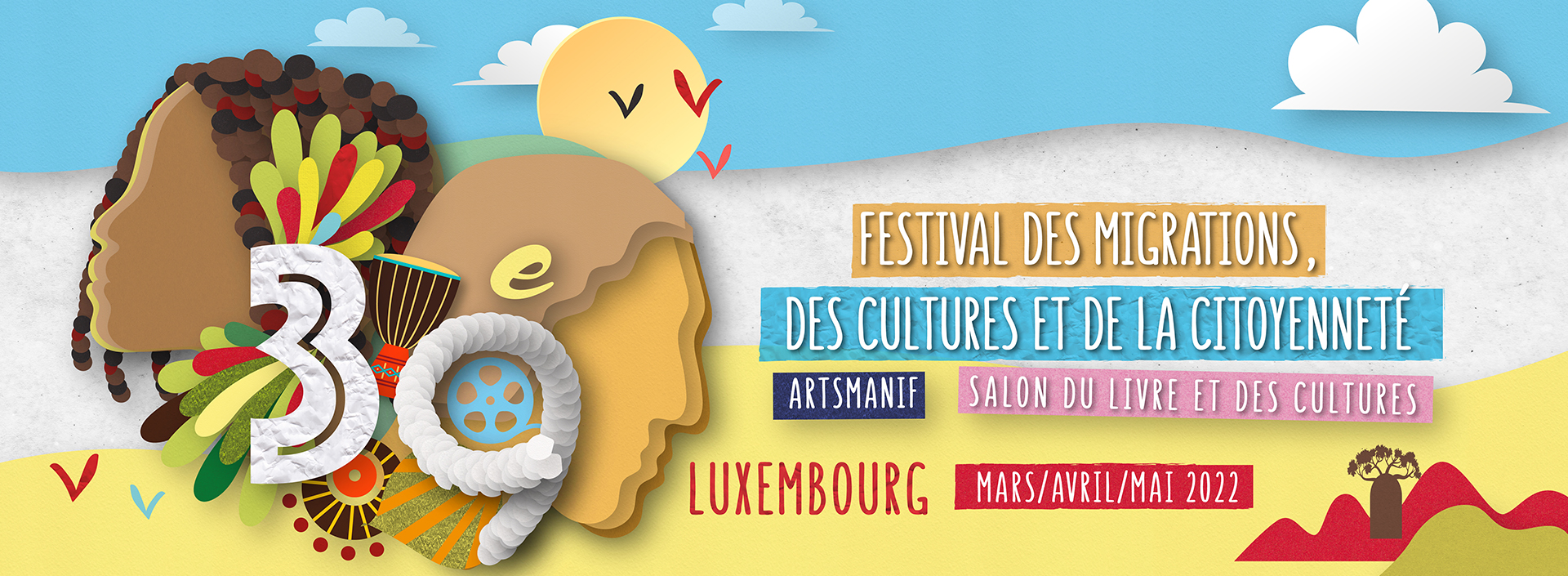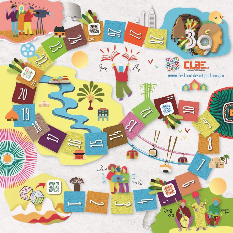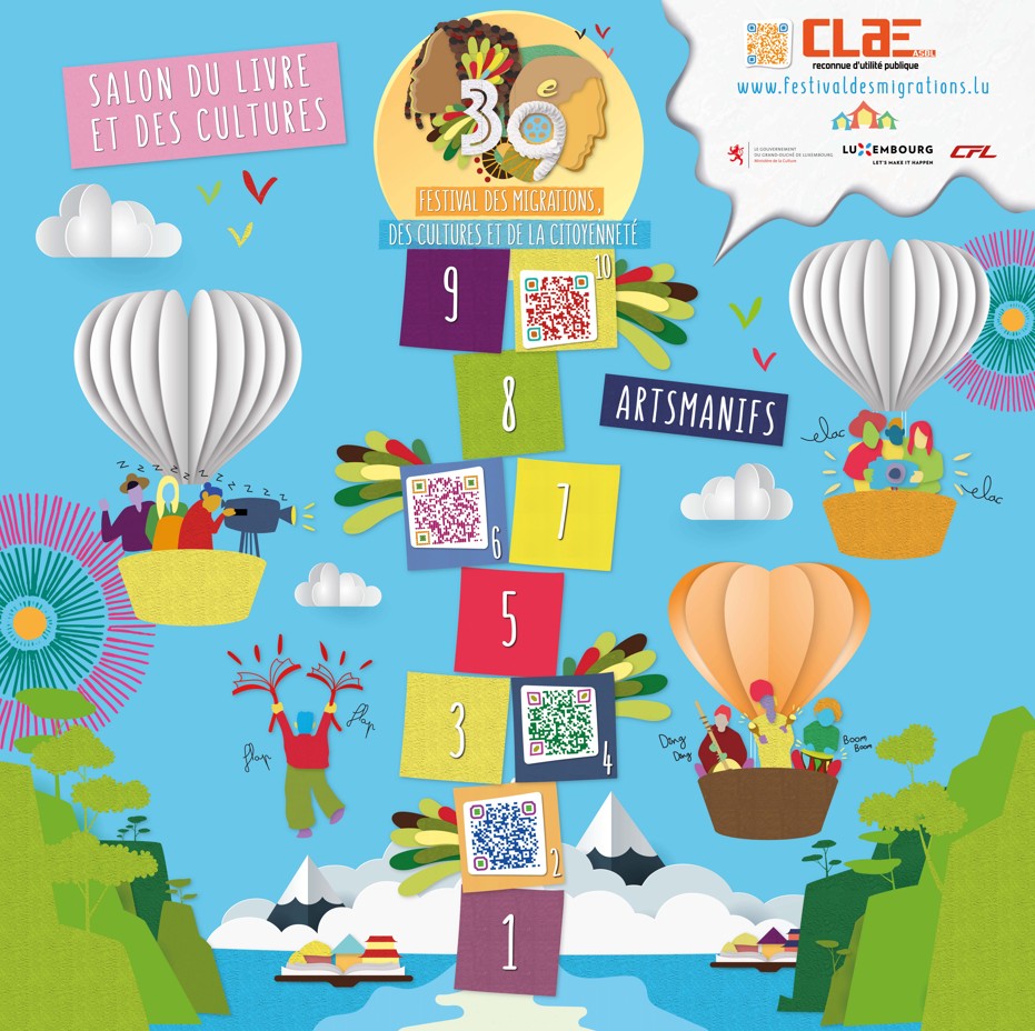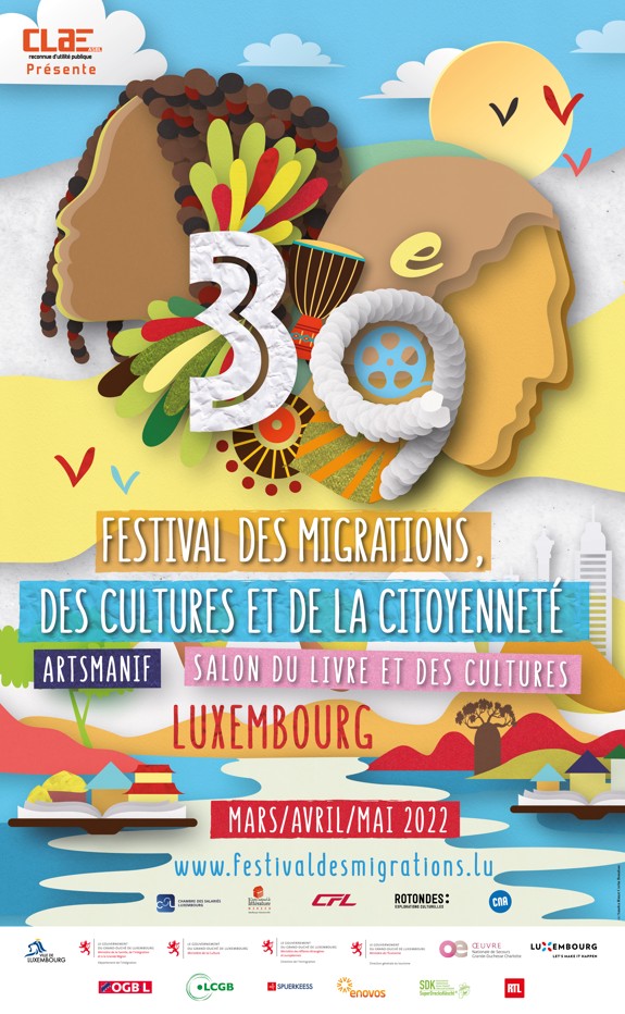 En 2022, j’ai été sélectionnée suite à un appel à projet pour créer l’affiche officielle du Festival des Migrations, des Cultures et de la Citoyenneté organisé par le CLAE Asbl (Comité de Liaison des Associations d’Etrangers – Reconnue d’utilité publique) à Luxexpo, Luxembourg.