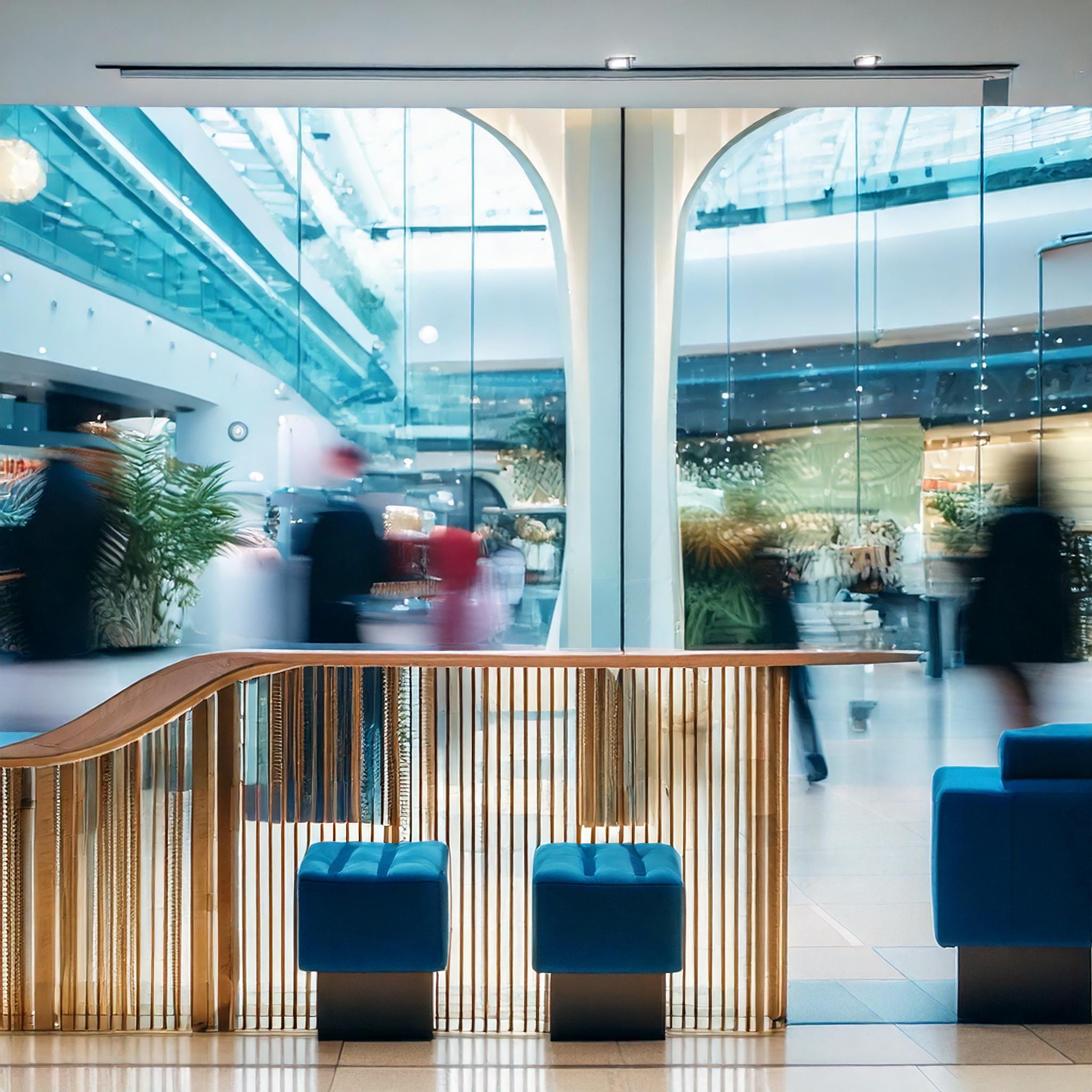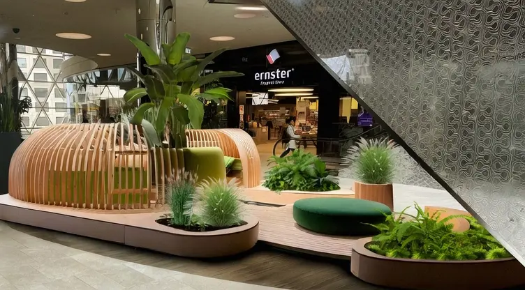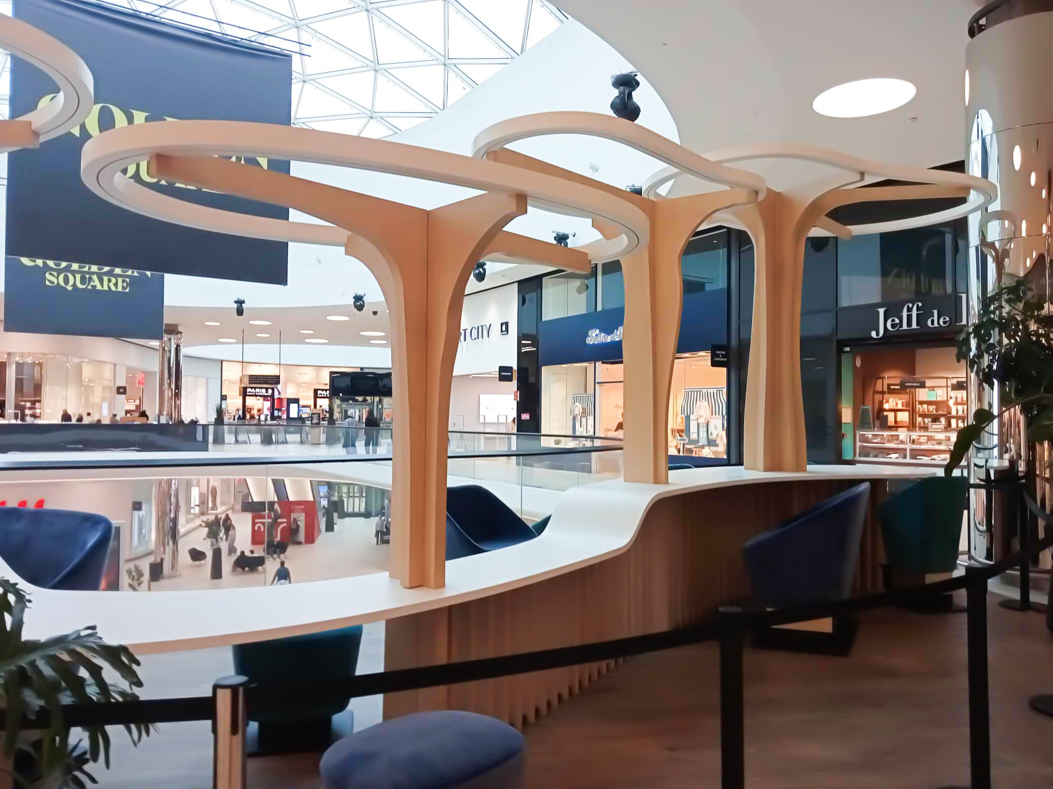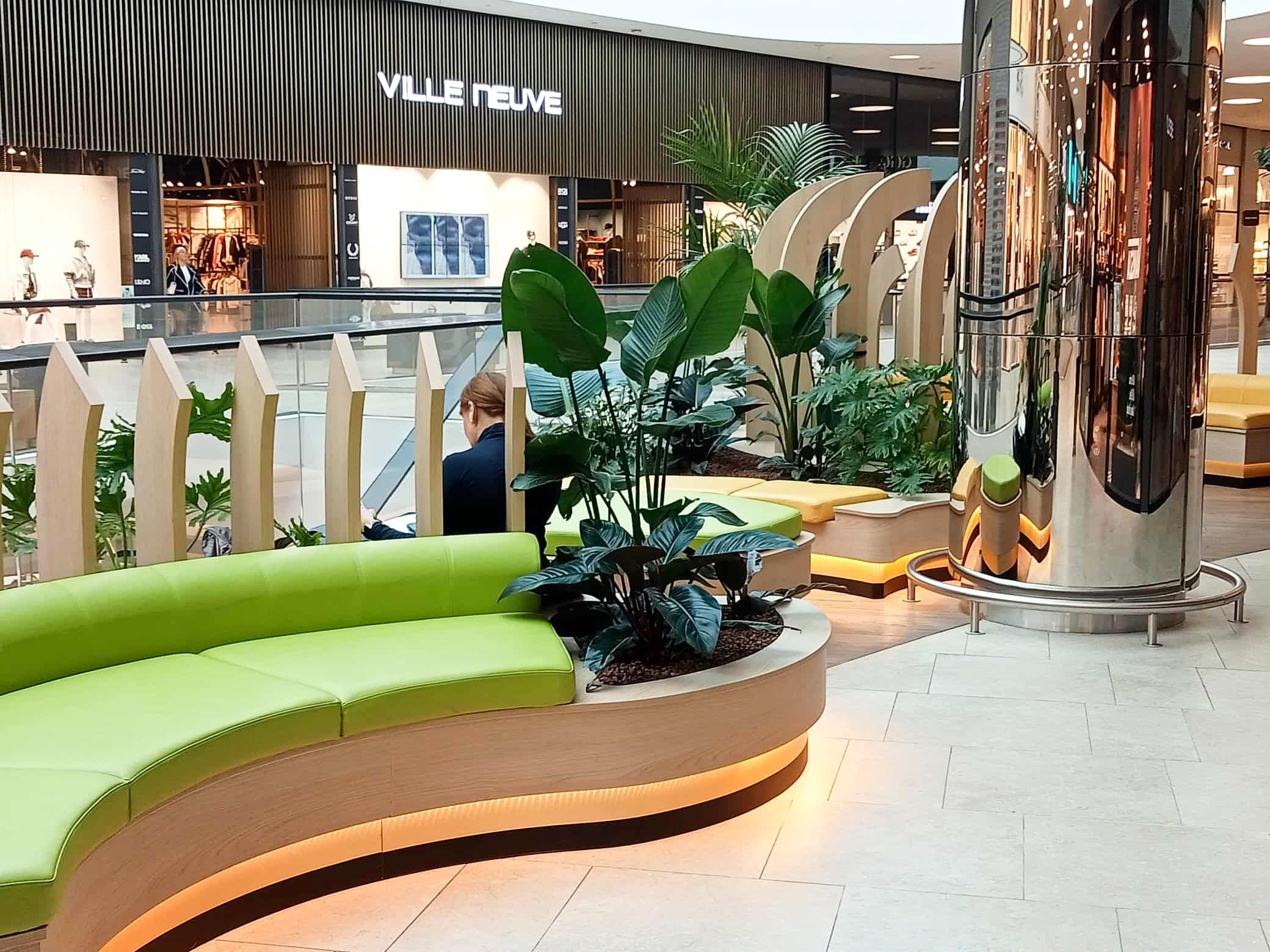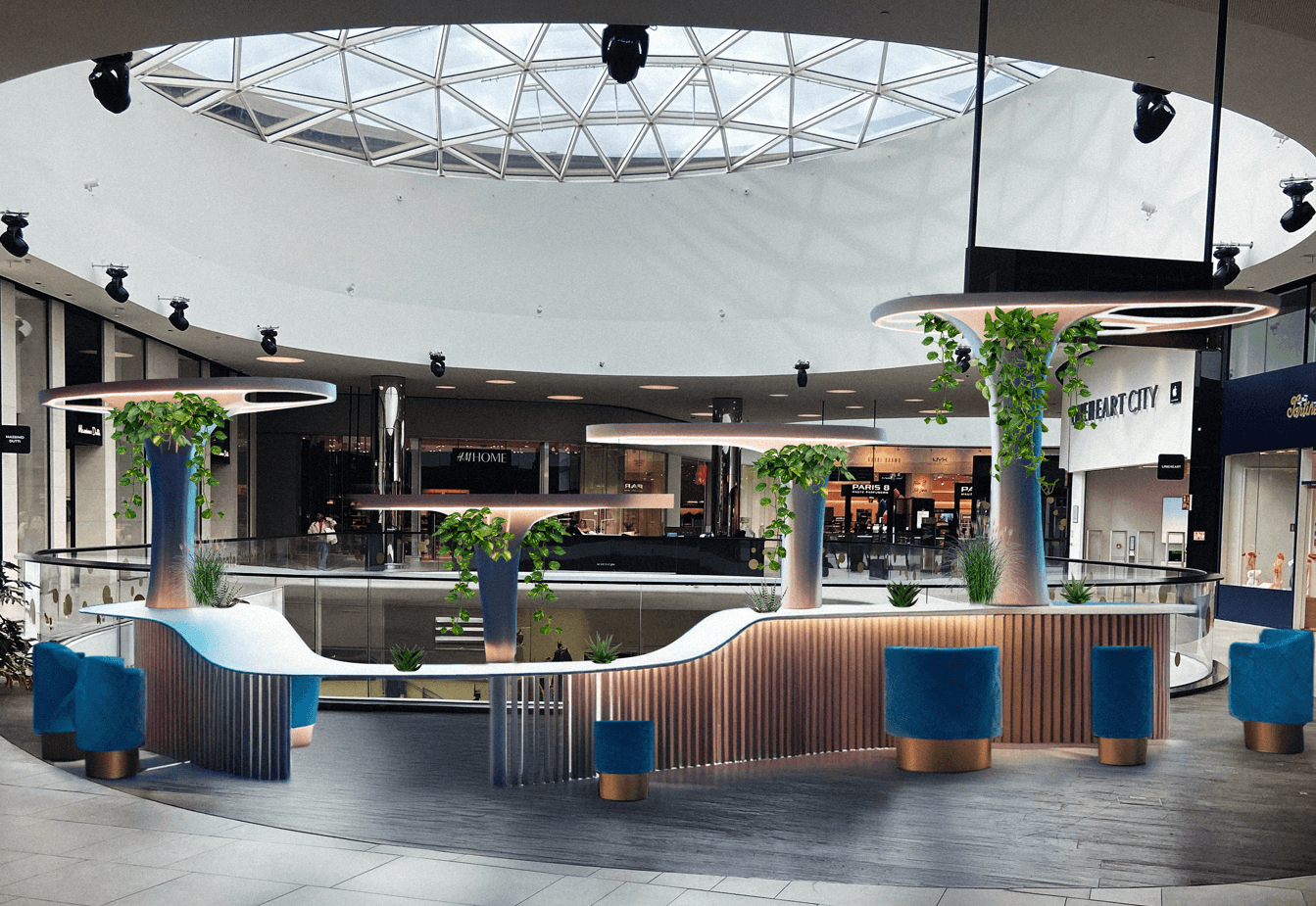 Je me suis occupée de toute l’idée visuelle et de la direction graphique : choix des couleurs, ambiance, cohérence esthétique et intégration dans l’espace existant. Le Salon Bleu, axé sur la productivité, joue sur un bleu profond et des touches dorées, avec du mobilier modulable, des espaces semi-privés et des services intégrés. Le Salon Vert, plus chaleureux, mise sur des tons naturels, des matières douces et un mobilier flexible pour favoriser la détente.