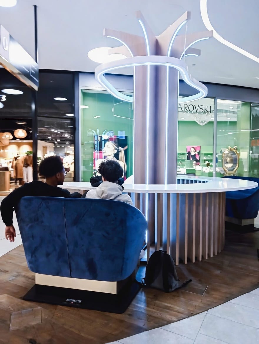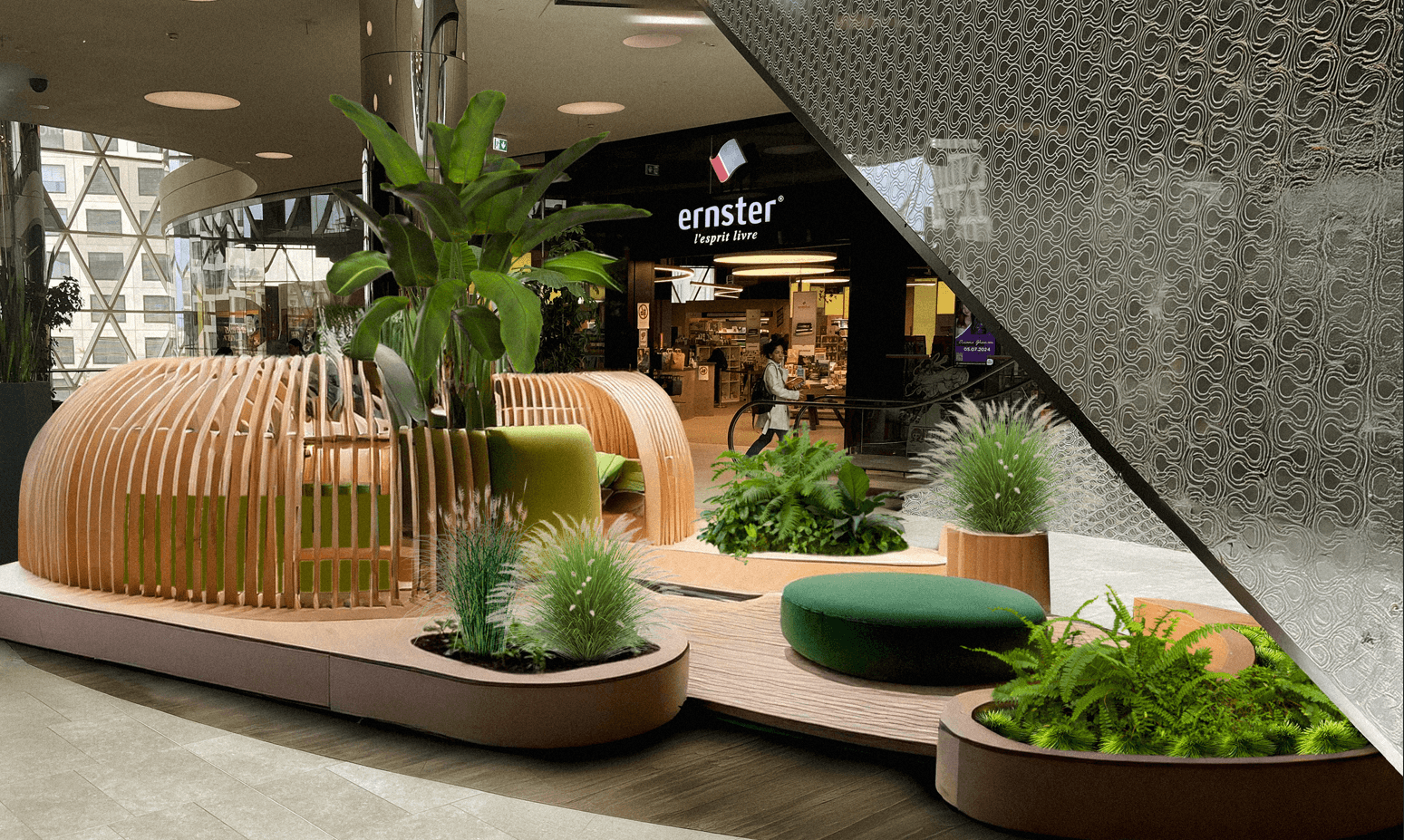 Ce projet a été imaginé comme un duo d’espaces complémentaires au sein du centre : un salon dédié au travail et à la concentration, et un salon pensé pour la détente et les échanges.