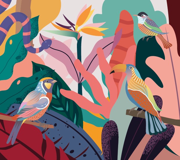 Les illustrations ont été pensées pour éveiller l’imaginaire des enfants, avec des formes simples, des couleurs vives et des animaux présents un peu partout dans l’espace. Chaque élément a été adapté sur différents supports.