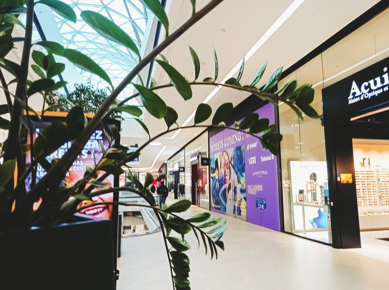 J’ai imaginé un habillage pop et coloré, avec un style proche du découpage, pensé pour attirer l’œil dans un espace très fréquenté. Le visuel devait être fort, lisible de loin, et respecter la charte graphique du centre commercial.